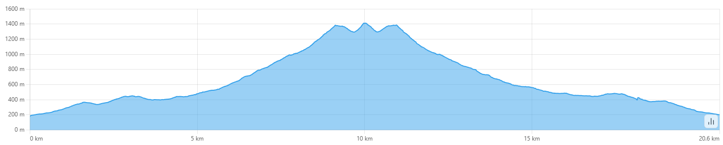 The hike consists of one long ascent to the summit followed by the same way back. The hike will be more than 20 kilometres in total.