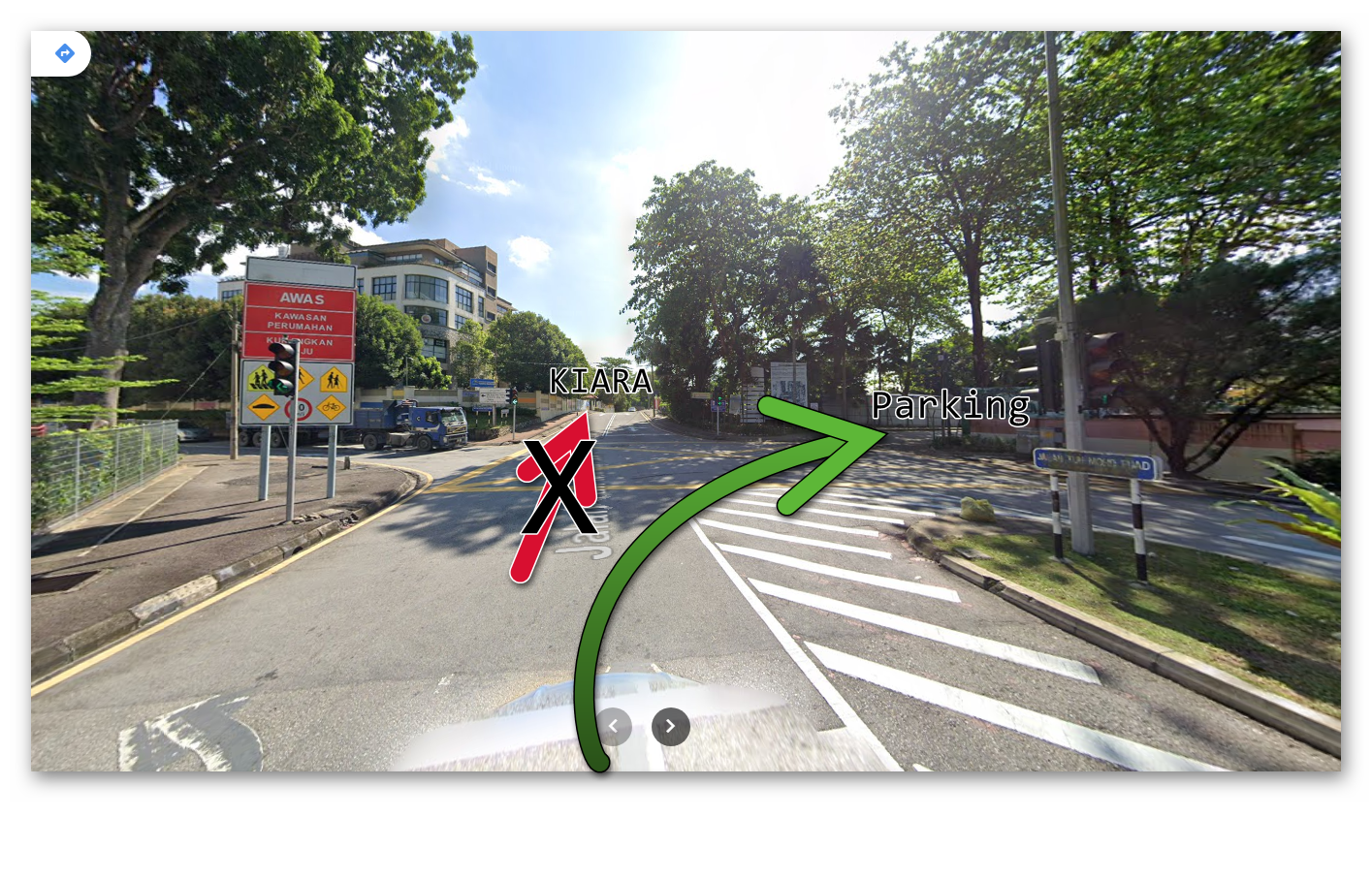 6. The coordinates of the meet-up place (parking lot) are 3.139537, 101.632216 or you can use 'Pertubuhan Pembangunan Kendiri Wanita dan Gadis ( WOMEN:girls )' in Google Maps. Just before the building, at the traffic light, turn right to reach the parking lot.